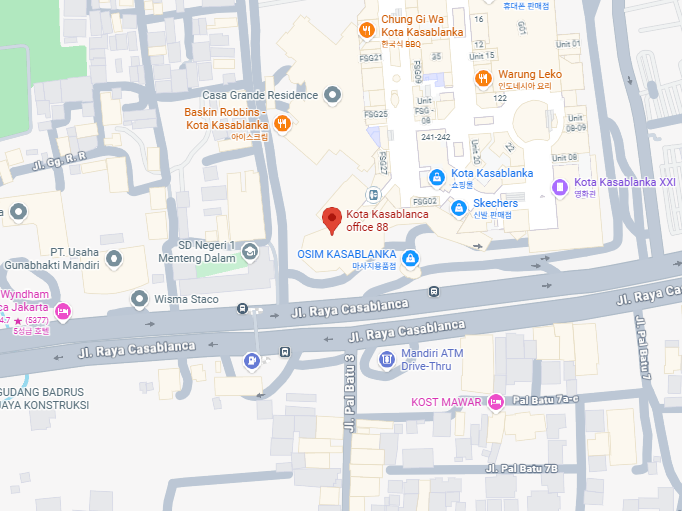 Gedung EightyEight, Jl. Raya Casablanca No.Kavling 88 Lantai 18 Room 1837, Menteng Dalam, Kec. Tebet, Kota Jakarta Selatan, Daerah Khusus Ibukota Jakarta 12870